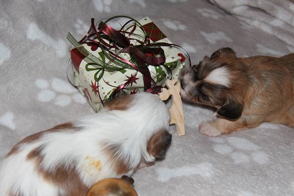 Alle hatten schon eine Weihnachtsfeier, Frauchen, Herrchen sogar 2 mal, nur wir noch nicht :-((  Ich wollte in diesem Jahr auch mal eine haben, zusammen mit meinen Großnichten und -neffen!
