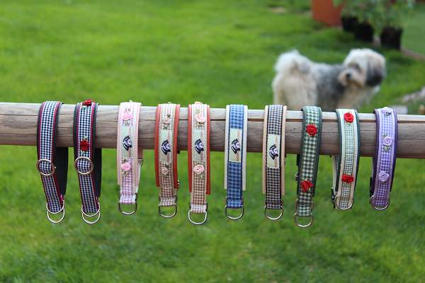 Hier findet ihr selbst entworfene Halsbänder und Leinen, gefertigt