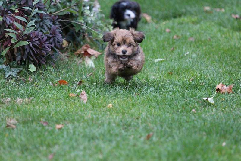 Inzwischen ist der große Garten ihr liebster Spielplatz, sie lieben es dem Herbstlaub hinterher zu jagen.